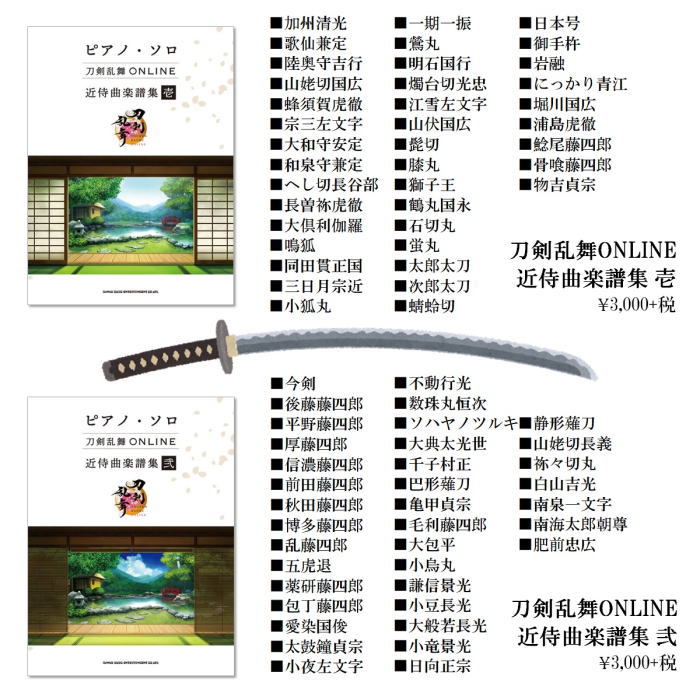 刀剣男士の近侍曲集が2⃣冊同時に新登場🗡️ 刀剣育成シミュレーションゲーム「刀剣乱舞ONLINE」より、刀剣男士の近侍曲集が2⃣冊同時に新登場🗡️ ピアノソロ中級の楽譜です🎹 「壱」には三十九振り分、「弐」は三十七振り分の大ボリューム🤩 巻頭カラーには刀剣男士たちがたくさん💕 主さんの最推しはどちらに載っていますか⁉️
