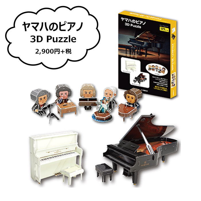 『ヤマハのピアノ 3D Puzzle』が入荷‼️ 組み立てて楽しい、読んで役立つ🎵 『#ヤマハのピアノ 3D Puzzle』が入荷‼️ ヤマハのピアノが3Dパズル(模型)になりました✨ 厚紙からパーツを取り外して組み立てるピアノ&作曲家5人の立体パズル。ハサミ、のり不要の簡単177ピースです🧩 学習要素として入っている作曲家5人の学習カードも嬉しい🤗