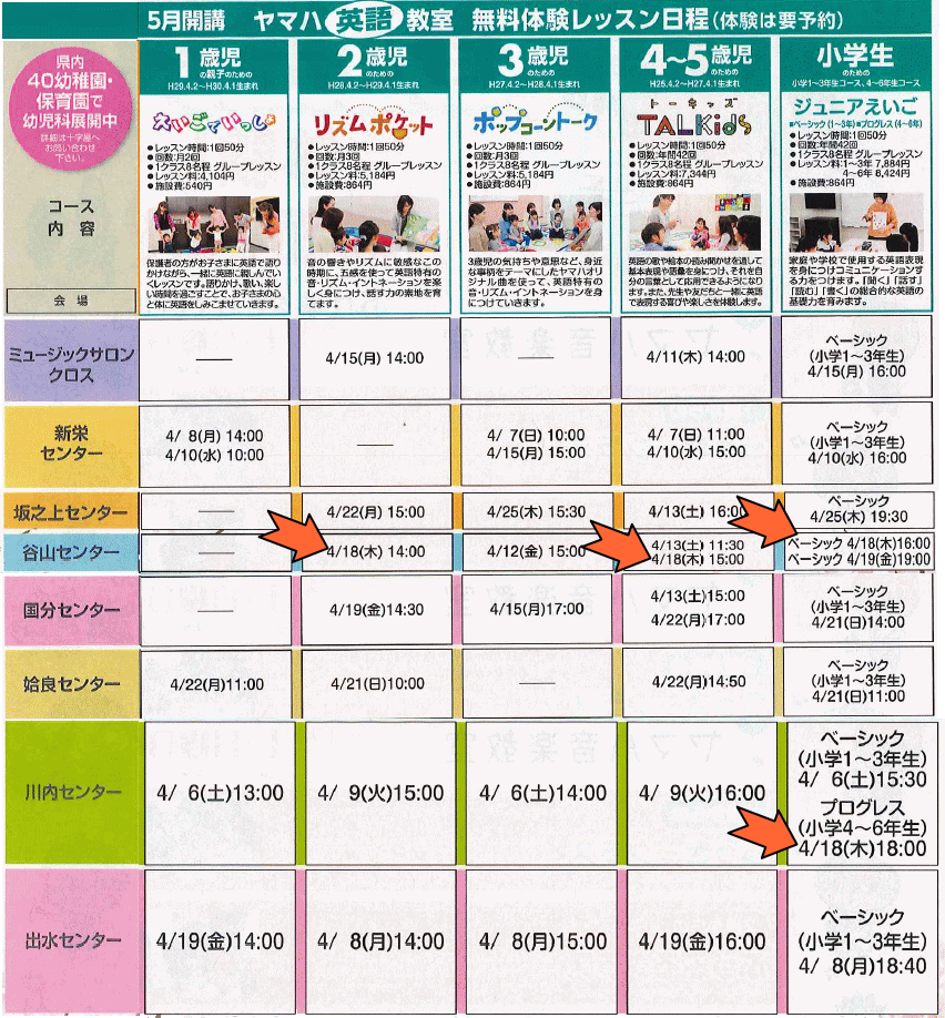 ※今回ご都合つかない場合は、レッスン見学可能日などご案内します。お問合せ下さいませ。