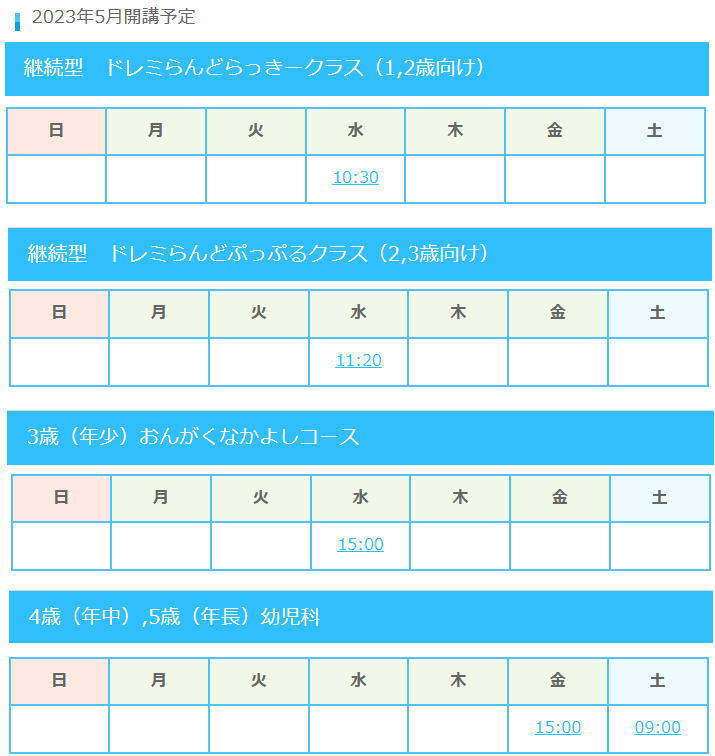 ※今回ご都合つかない場合は、レッスン見学可能日などご案内します。お問合せ下さいませ。